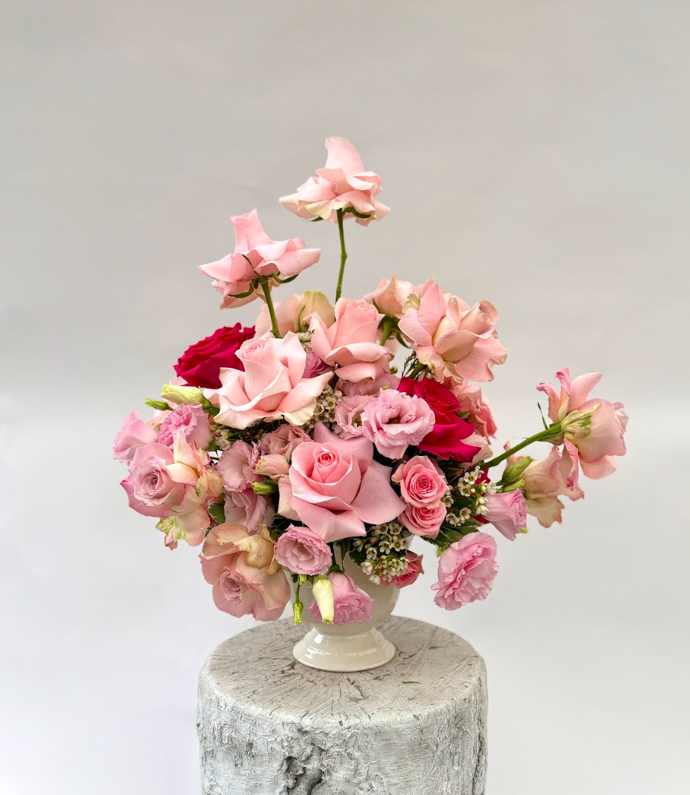 This arrangement features premium pink roses - some aetfully flexed for extra movement and drama. A modern take on classic romance.